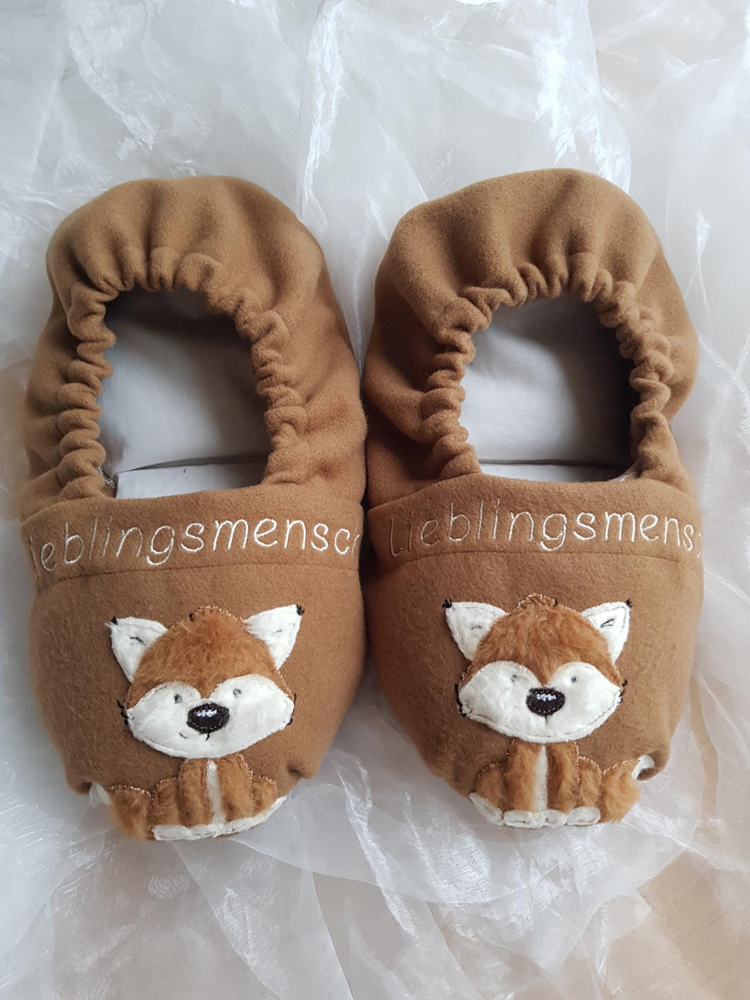 No more cold feet. These beautiful, handcrafted grain slippers put an end to cold feet. Please click on the desired size.